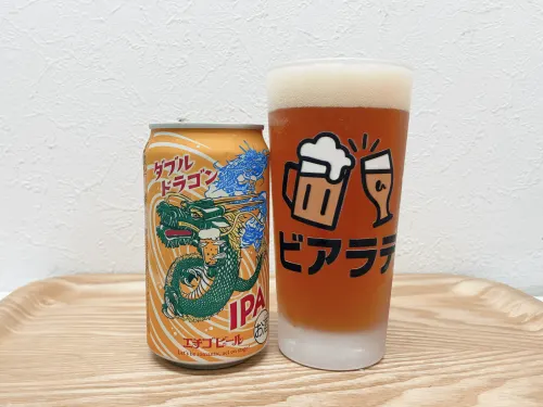 エチゴビール「ダブルドラゴンIPA」 は、定番の「フライング アイピーエー」をベースに、サブローとモザイクの2種のホップをドライホッピングした力強いIPAです。