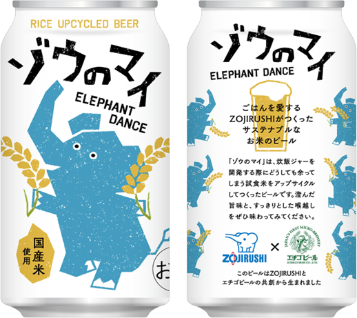 - ゾウのマイは、炊飯ジャーの開発でどうしても余ってしまう試食米をアップサイクルして生まれたビール。苦味の少ないすっきりとした喉越しで、ゾウさんがおもわず舞い踊ってしまうほどのおいしさです。